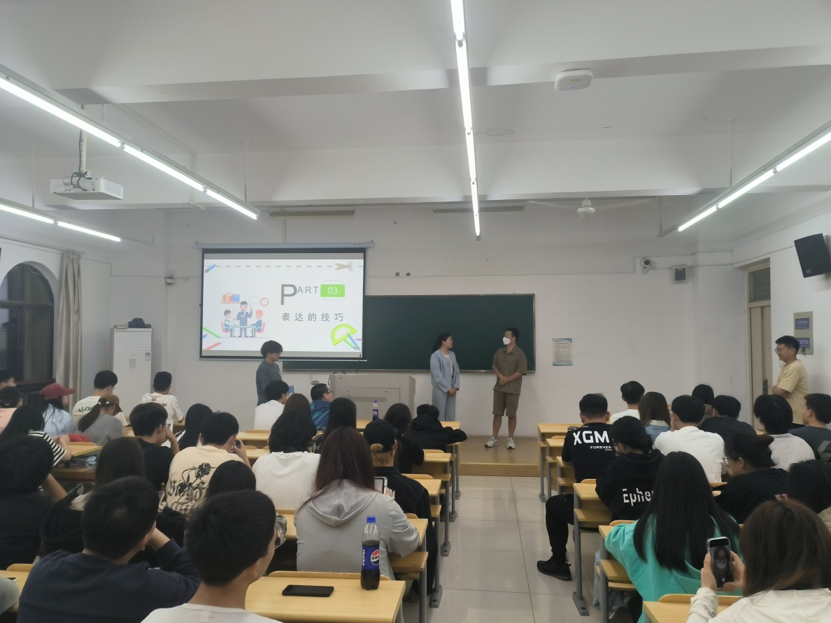 活动中,傅莉莉以“学会沟通,让人际关系更美好” 为主题,从沟通的重要性、沟通的过程、表达技巧、积极倾听以及注重和建立共同点五个方面进行讲述。此外,她指出,心理干部们做好本职工作的前提是要学会自助,才能助人,同时还要做个有心人,能够敏感的捕捉到周围同学的情绪变化;要富有爱心,倾听同学的困惑,力所能及帮助同学度过情绪低谷和难关;要有高度的责任心,紧密联系辅导员和心理中心老师,及时给予同学专业的帮助。