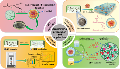 研究通过Michael反应分子修饰GO@SA骨架官能团开发超支化增韧功能碳烯型水凝胶(GO/HBP@SA)。研究GO/HBP@SA对左氧氟沙星(LEV)污染物吸附性能及在K2S2O8热活化降解LEV体系中作为“分子反应器”对LEV的降解效果。新型GO/HBP@SA表现出超高的抗压缩弹性性能,在70%的压缩变形下达到1.543MPa的压缩应力,抗拉强度和模量分别为201.7KPa和19.9MPa。降解后的LEV去除率达到92.51%,最大吸附容量119.6mg·g-1。在连续20次循环吸附后,GO/HBP@SA对LEV的吸附容量保持80%以上,表现出优异的可重复使用性。