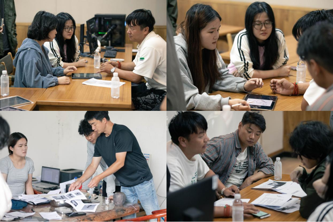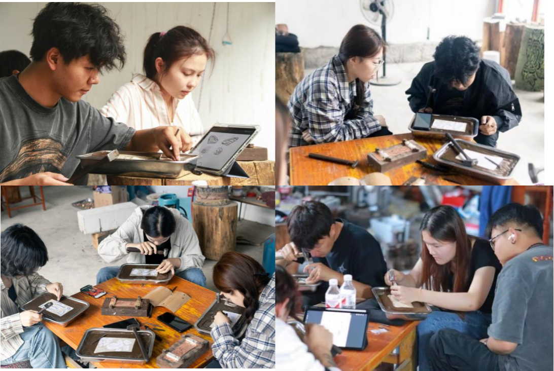 经过严格的筛选,8位来自视觉传达设计专业 22 、23 级与产品设计22级的学生,以及2名经验丰富的专任教师组成了此次工作坊的团队,共同前往位于云南鹤庆的“珍珠银饰工艺联合培养基地”。在基地内,李栋梁、李焰刚、郑磊3位银饰锻制技艺工作室负责人亲自指导。他们不仅向师生们传授传统银饰制作技艺,还与师生们就设计理念和实现方法进行了深入交流,确保每一件作品展现出珍珠与银饰材料结合的独特魅力。