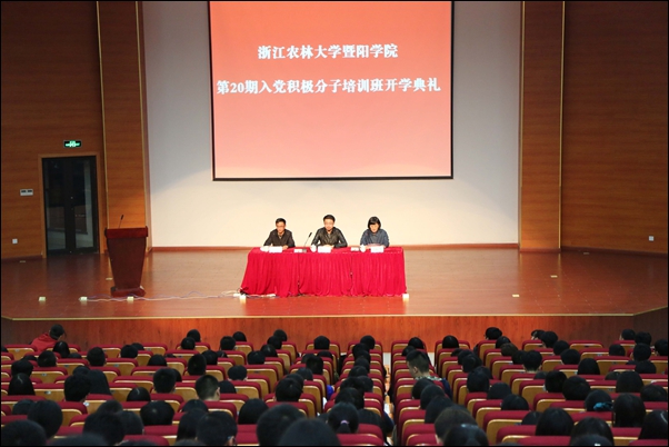 11月4日晚,学院分党校第20期入党积极分子培训班开学典礼在明珠报告厅举行。学院党委副书记蔡永华出席开学典礼。开学典礼由组织人事部主任李叔君主持。