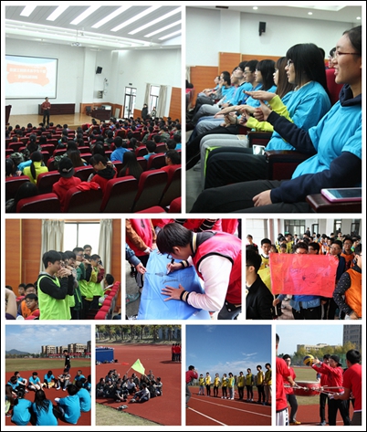 本次拓展训练特邀请了两名专业的培训教练,为充分发挥每个队员的潜能,教练将队员随机组成10个队伍,通过选队长、副队长、制队训、唱队歌、做队旗等环节进行团队组建。“团队力量”、“鼓动人心”、“惊险倒计时”等训练项目挑战了队员们的心理素质和应变能力,使同学在训练中体验生活、磨砺性格、健康成长。每一个活动之后,教练们都会一起分享心中的感受,或总结经验,或自我批评,或反思进取。分享的过程让大家充分感受到,团队的力量,即使出现问题,大家也不互相抱怨,不自我放弃,而是更加坚定:作为一个团队,齐心协力,多沟通,就可以战胜一切困难。