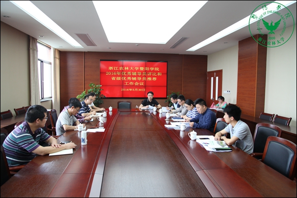 5月30日,学院2016年优秀辅导员评比和省级优秀辅导员推荐工作会议在行政楼会议室召开。学院党委副书记蔡永华出席会议,办公室、教务与科技部、学工部(团委)、公共保障部等相关负责人和各系党总支书记参加会议。