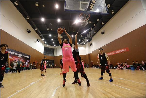 本网讯 3月23日晚,学院体育中心篮球馆副馆灯火通明,热闹非凡,喝彩声鼓掌声此起彼伏。。。太阳官网学生篮球队参加的绍兴市首届市民运动会暨大学生篮球赛第三场比赛火热上演。