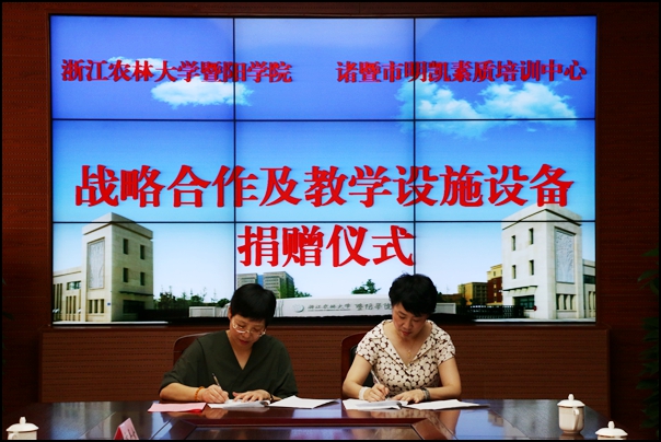 近日,学院与明凯素质培训中心的战略合作签订仪式暨教学设施设备捐赠仪式在行政楼302举行,副院长李文莉、诸暨市明凯素质培训中心校长边幼凤出席仪式,仪式由社会合作与创业部主任陈航峰主持。