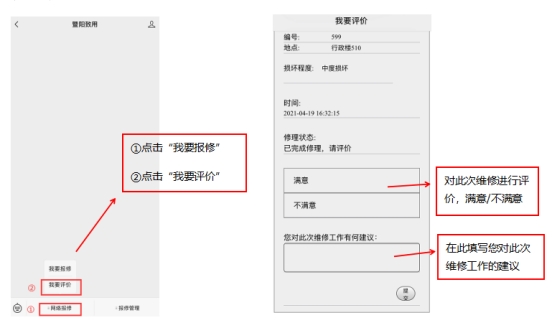 4、故障维修后,可通过点击“我要评价”对维修进行评价。