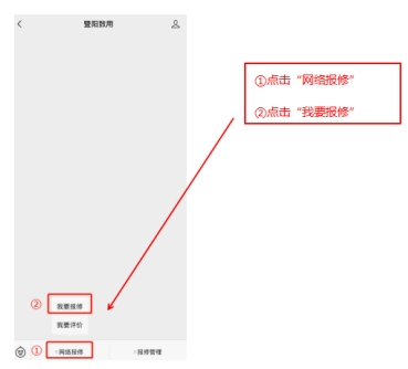 2、进入公众号后,点击“网络报修”,选择“我要报修”。