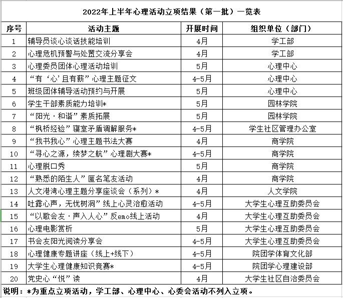 关于公布2022年上半年心理活动立项结果(第一批)的通知
