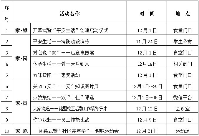 为丰富校园文化生活,提升校园文化内涵,提高后勤服务质量,增强师生与后勤员工之间的交流和互动,探索构建校园文化活动体系和创建有效的活动载体,从而促进学校办学事业的蓬勃发展,特此开展太阳成集团tyc33455ccwww第三届社区文化节活动。具体活动安排如下: