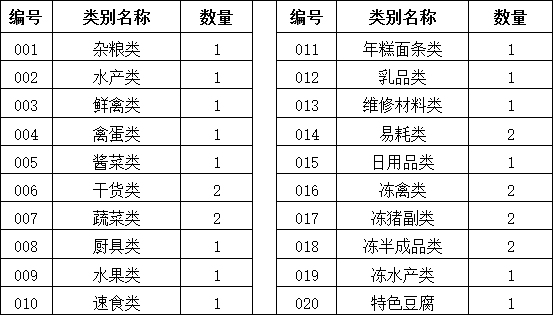 “007蔬菜类”和“018冻半成品类”招商数量为2家,其中1家为备用供应商,指参与投标的综合得分第二顺位的投标人,保有配送资格但暂缓供货,在第一顺位中标供应商无法完成配送任务或中止合同后,可启用备用供应商。