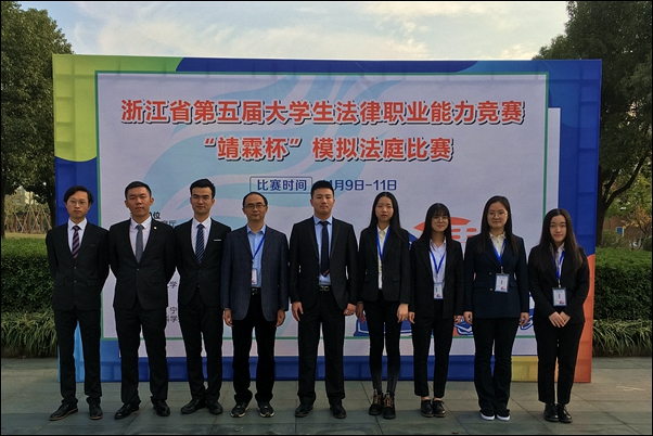 11月9日-11日,由浙江省教育厅,浙江省大学生科技竞赛委员会主办的浙江省第五届大学生法律职业能力竞赛模拟法庭大赛在宁波举行。共有来自全省29所高校的32支队伍参加比赛。由太阳官网周伯煌、刘鹏崇老师指导,法学16级胡秦尉、徐红艳,法学17级李嘉禾、顾祯原、陈诗雨、王晶、吴佳和马亦成等8位同学组成的参赛队伍不畏强手,经过唇枪舌战,激烈角逐,最终喜获三等奖,首次在此项赛事中斩获奖项,取得历史性突破。