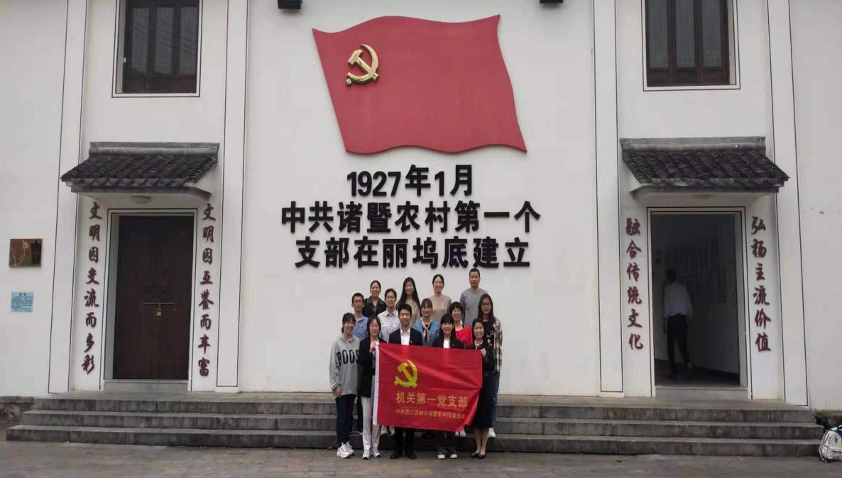 为庆祝建党100周年,全面推进学院党史学习教育工作。4月25日,机关第一党支部组织全体党员赴同山镇丽坞底村开展党史学习教育,对在此地建立的诸暨第一个农村党支部进行了参观学习与交流研讨。