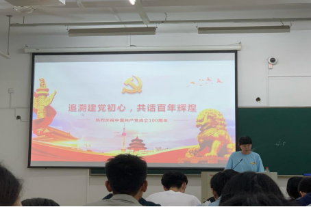 立于建党百年之际,回顾光辉岁月。为深入贯彻习近平总书记在党史学习教育动员大会上的重要讲话精神,重温历史,学习中国共产党人带领人民坚持不懈奋斗的光辉历程,法学专业学生党支部于2021年5月18日在人文2313以“追溯建党初心,共话百年辉煌”为主题,组织开展党史学习会。本次学习会由夏心怡同志主讲,法学专业支部全体党员、预备党员以及入党积极分子共同参加。