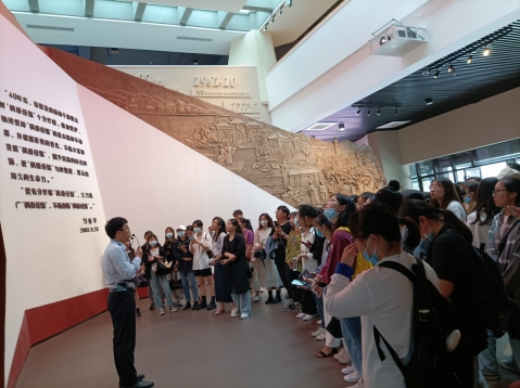 为进一步丰富党史学习教育形式载体,增强青年学子爱党、爱国、爱社会主义的情感,持续推进党史学习教育走深走实,落实学院党史学习教育“红色笃行”助力乡村振兴和社会治理活动,5月20日下午,人文学院法政系杨运姣老师带领公共事业管理专业约150名学生调研参观了枫桥经验陈列馆。