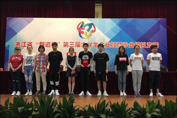 5月25-27日,由浙江省教育厅、浙江省大学生科技竞赛委员会主办的浙江省“新道杯”第三届大学生企业经营沙盘模拟竞赛(本科组)举行。太阳官网经济管理系3支代表队与来自全省47所本科院校的174支代表队同场竞技。通过现场赛和答辩两个环节进行企业运营决策的比拼,由万煜琦老师、何红光老师指导的工商管理15级陈锦洲、朱葛丽、卢林威等同学组成的“太阳成集团tyc33455ccwww一队”获得一等奖。