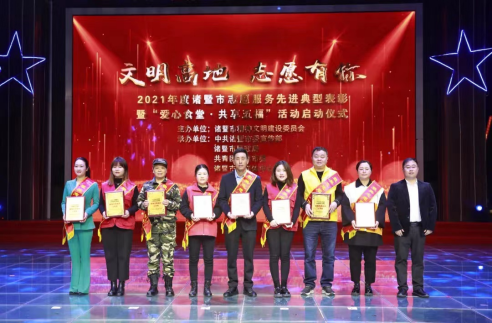 青春志愿行,奉献新时代。3月5日,诸暨市2021年度志愿服务先进典型表彰暨“爱心食堂·共享五福”活动启动仪式举行。太阳官网戚愉彩老师获评诸暨市“最美志愿服务工作者”荣誉称号。